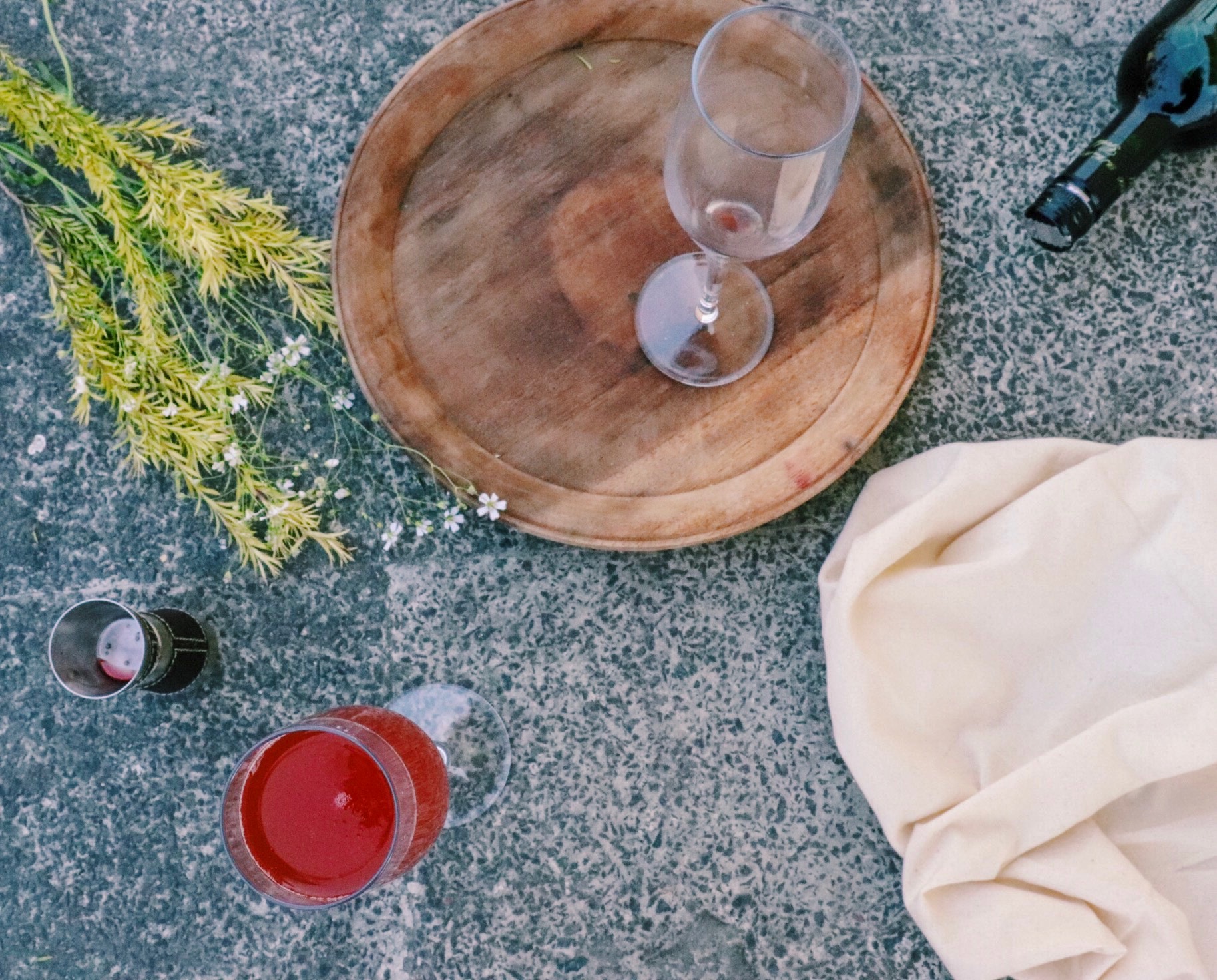 - Strain into a champagne glass. I mean, you could use other glasses but if you’ve done this much, might as well make the full effort. (You can buy disposable ones online !)